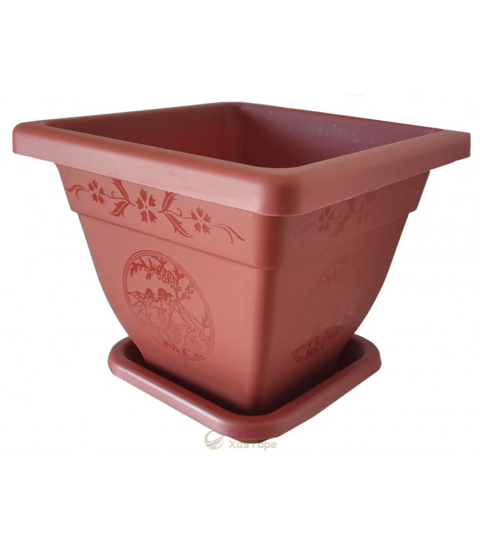 Кашпо квадратное №7 - удобный горшок для цветов с подставкой. Материал изделия - полипропилен. Высота кашпо 400 мм, длина 450 мм, ширина 450 мм, объем 40 л. Цвет разный.