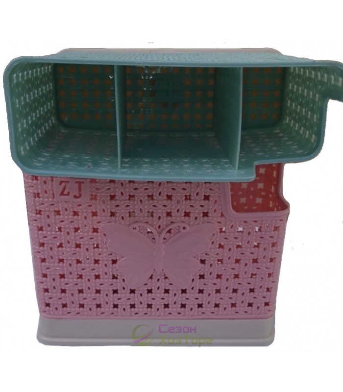 Пластиковая подставка служит для хранения и сушки столовых приборов. Органайзер имеет три отделения, что позволяет рационально разместить кухонные аксессуары. Размеры: 19*6*14 см. Цвет: разный.