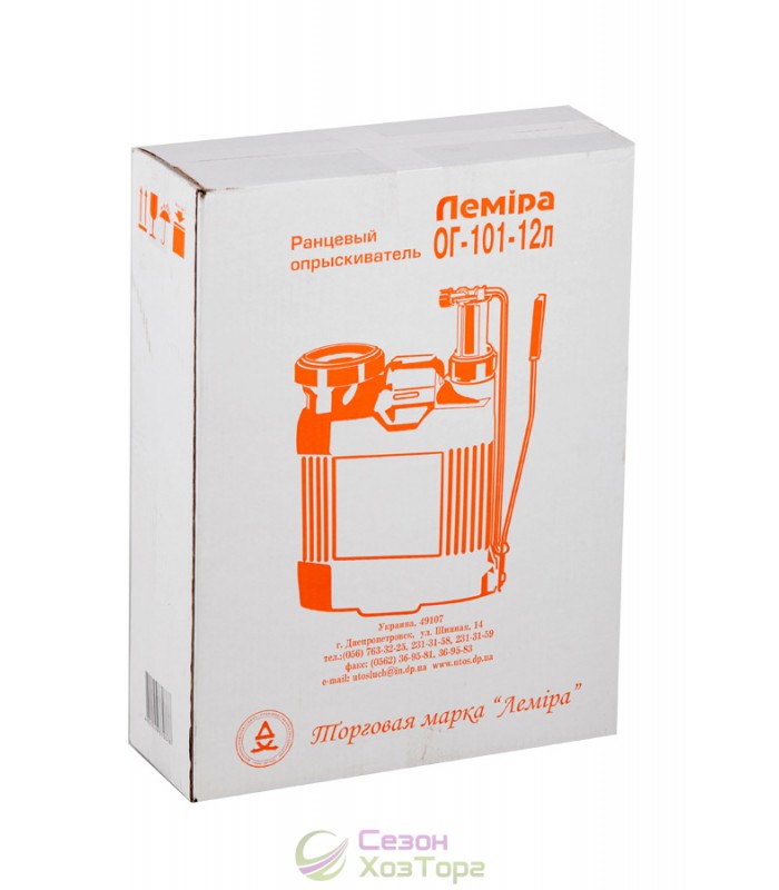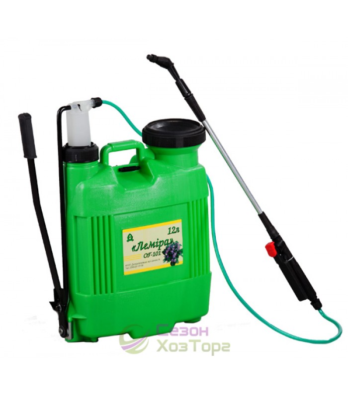 Опрыскиватель гидравлический ОГ-101 "Лемира" 12 л ранцевый применяется для опрыскивания химпрепаратами и жидкими удобрениями деревьев, кустарников, овощных и садовых культур. Также может использоваться для мытья машин, окон, различных поверхностей. Технические особенности: 1) прочный износостойкий корпус; 2) алюминиевый телескопический брандспойт длиной 1 м; 3) факел распыла - от струи до тумана; 4) высокопроизводительный насос; 5) плечевые ремни имеют регулируемые подкладки для удобства в использовании; 6) горловина имеет широкое отверстие с фильтром для залива жидкостей.