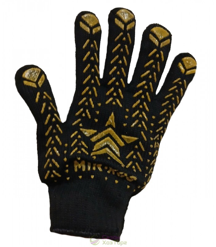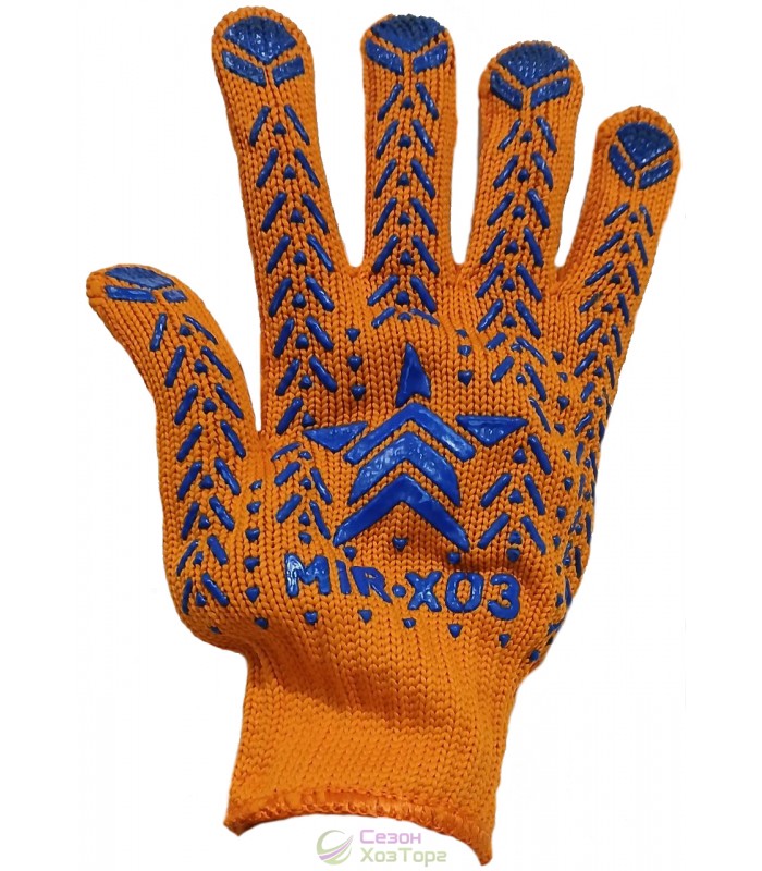 Перчатки рабочие с точечным покрытием из ПВХ и нанесенным узором в виде звезды считаются одними из самых прочных в ряде аналогичных изделий. Используются в садово-огородных, строительно-ремонтных, погрузочно-монтажных и хозяйственно-бытовых работах. Данные перчатки характеризуются высокой износоустойчивостью и хорошим сцеплением с предметами. Соединение хлопковых нитей с синтетическими волокнами обеспечивает высокую прочность материала и его растяжимость. Данные перчатки не вызывают потливости в кожных покровах, воздухообмен осуществляется благодаря содержанию х/б материала в составе внутренней поверхности перчатки.