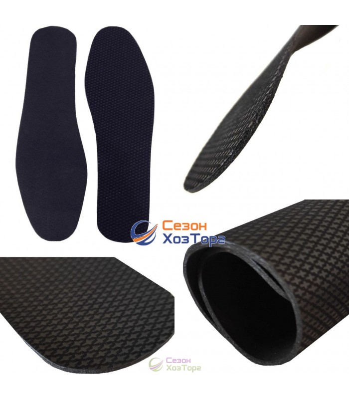 Стельки черные тонкие имеют латексную основу. Данный материал характеризуется легкостью, упругостью, эластичностью, водонепроницаемостью, гипоалергенностью. Преимущества использования стелек из вспененного латекса: комфорт и удобство при ходьбе, снятие усталости ног, амортизация стопы, абсорбция запахов.Обеспечивают длительную защиту от бактерий, поглощают неприятные запахи и дезодерируют обувь.