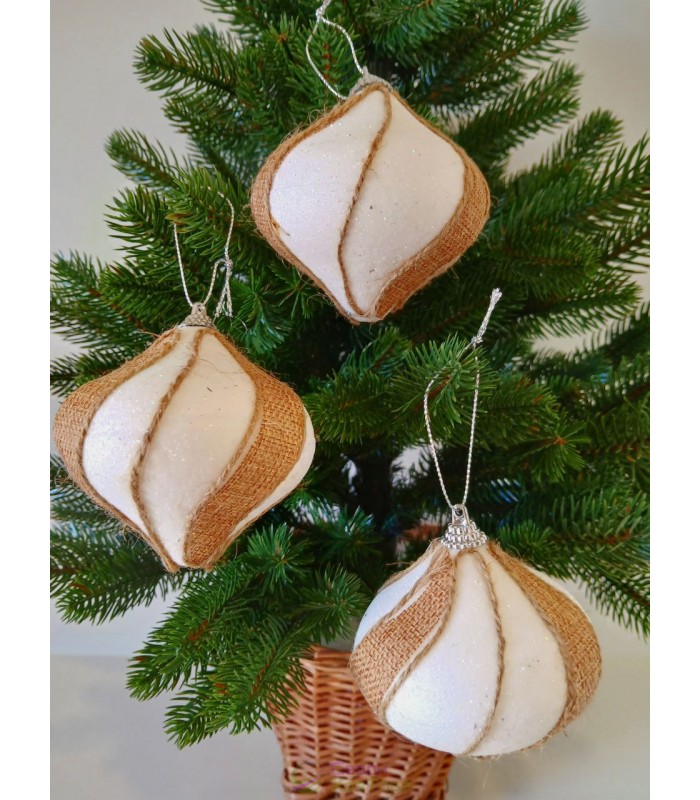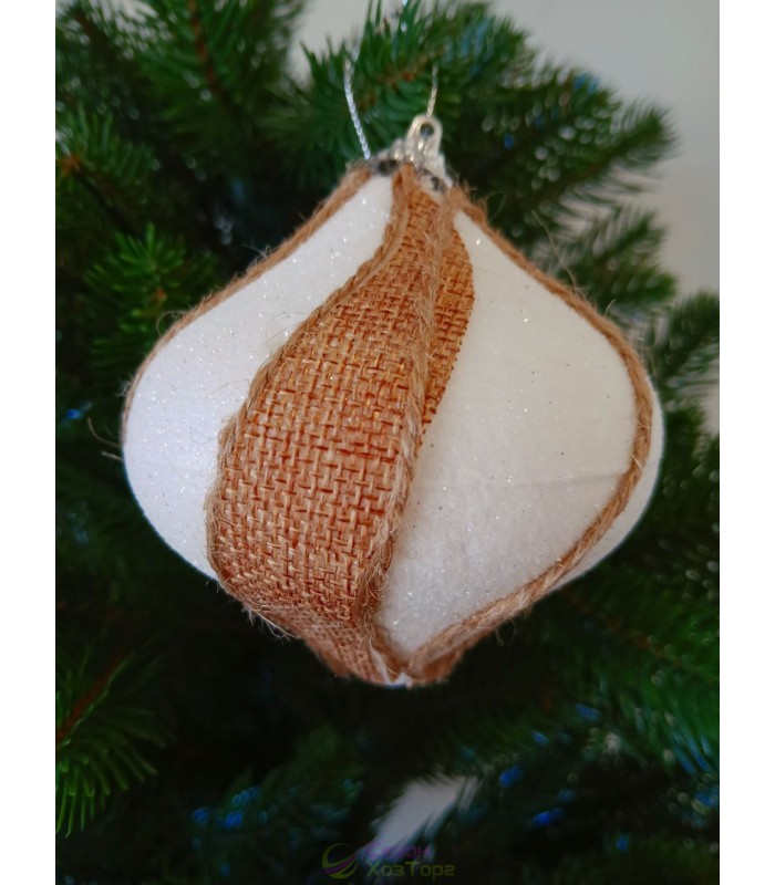 Новогодние шары белые в плетеной тесьме Ø100мм, цена за набор 2 шт (SH308)