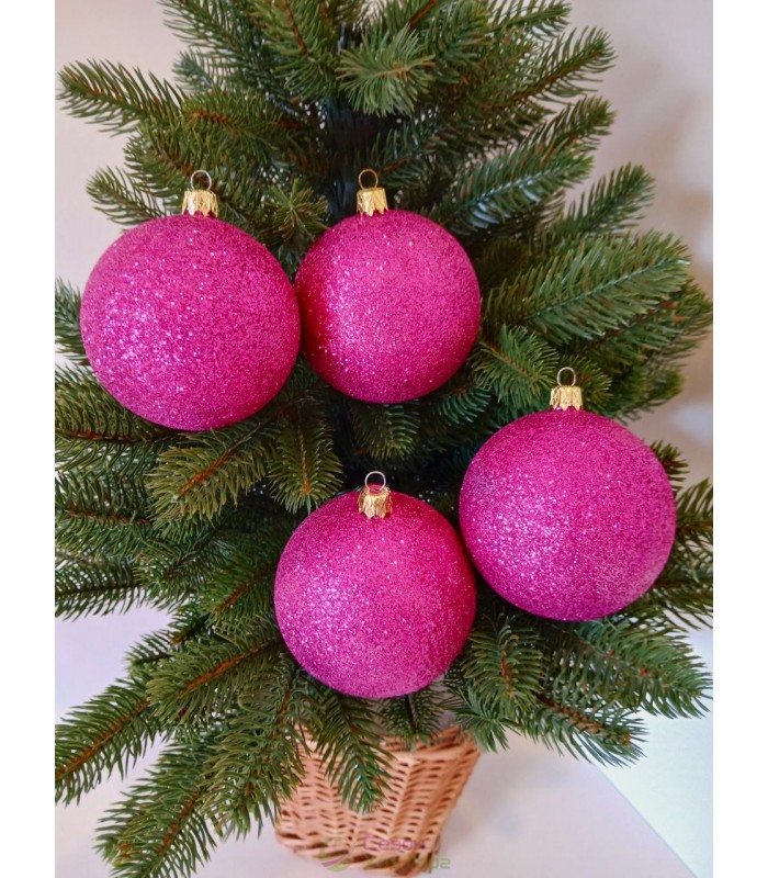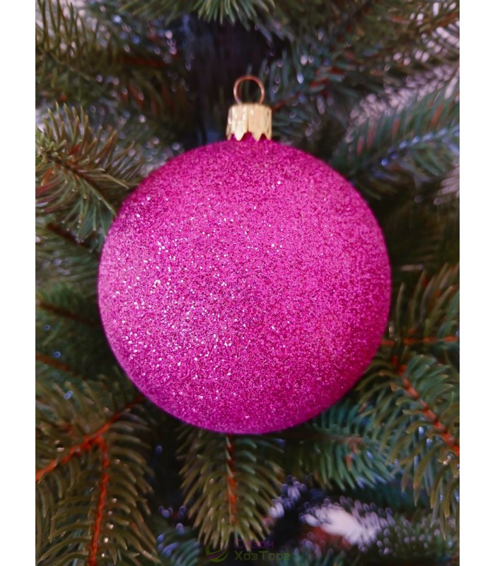 Новогодний шар "Блестки" Ø80мм малиновый, цена за набор 4шт