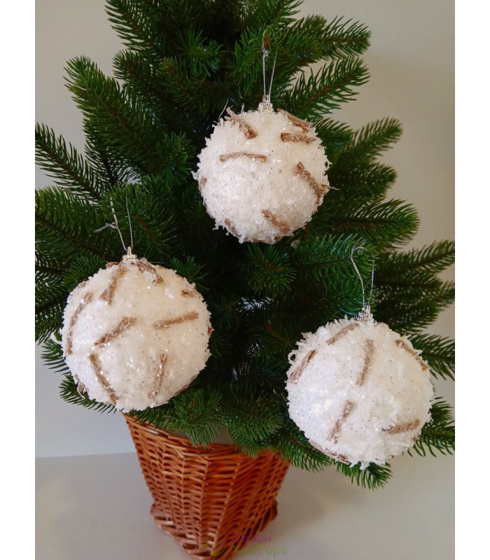 Новогодние шары заснеженные "Рафаэлка" Ø80мм, цена за набор 3 шт (SH235)
