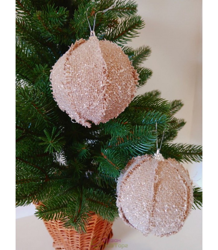 Новогодние шары с декором из мешковины Ø100мм, цена за набор 2 шт (SH252)