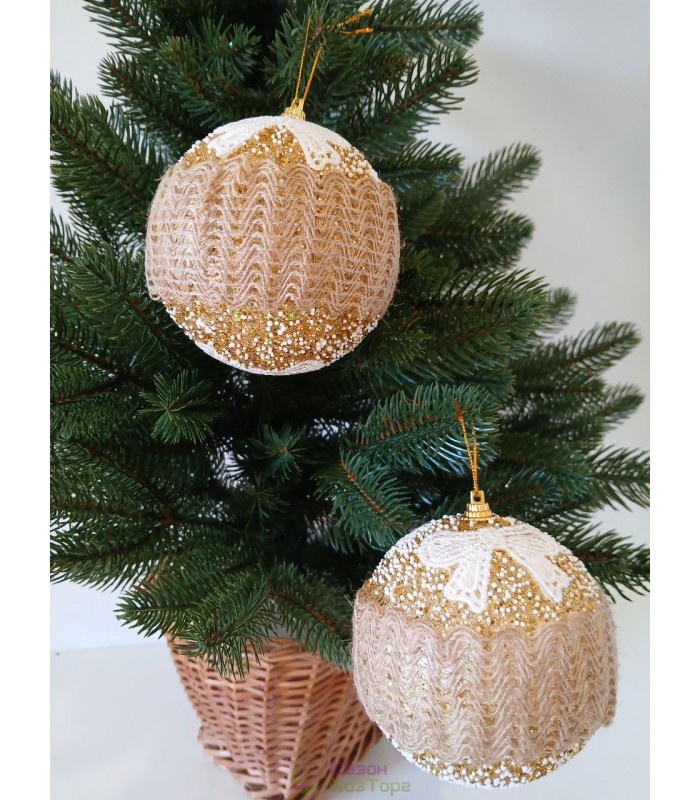 Новогодние шары с декором из мешковины Ø100мм, цена за набор 2 шт (SH252)