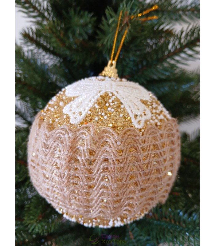 Новогодние шары золотые в ажурной вязке Ø100мм, цена за набор 2 шт (SH256)