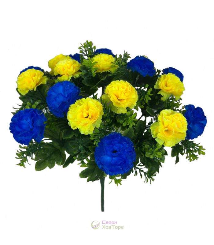 Букет искусственных желто-синих гвоздик 43см (№2441)