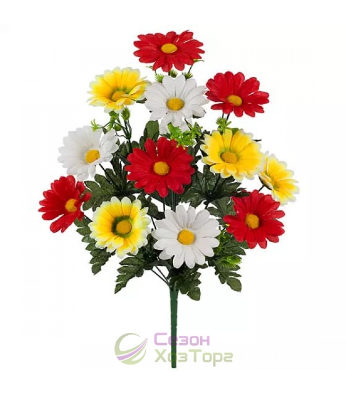 Букет трехцветный из искусственных ромашек 55см (№776)