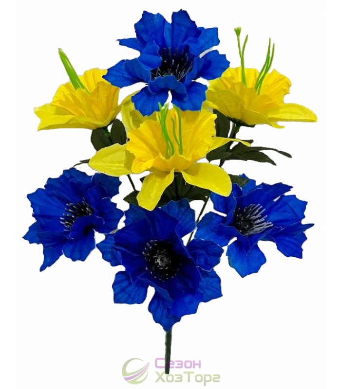 Букет искусственных нарциссов и васильков Украина 35см (№6140)