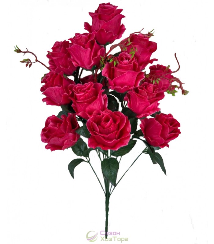 Искусственные розы пышные с бутонами в букете 56см (№8091)
