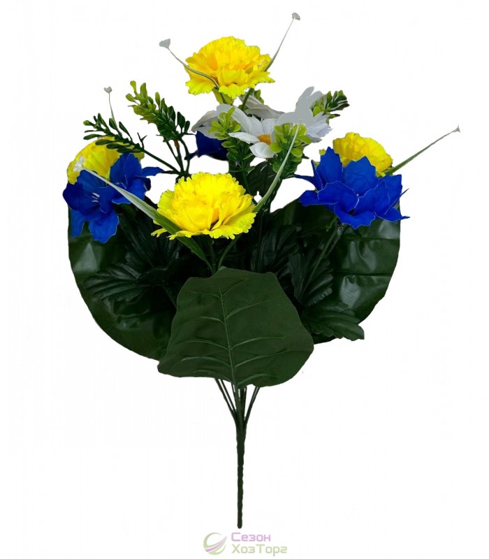 Букет из искусственных желто-синих цветов гвоздик, васильков и ромашек 47см (№6173)