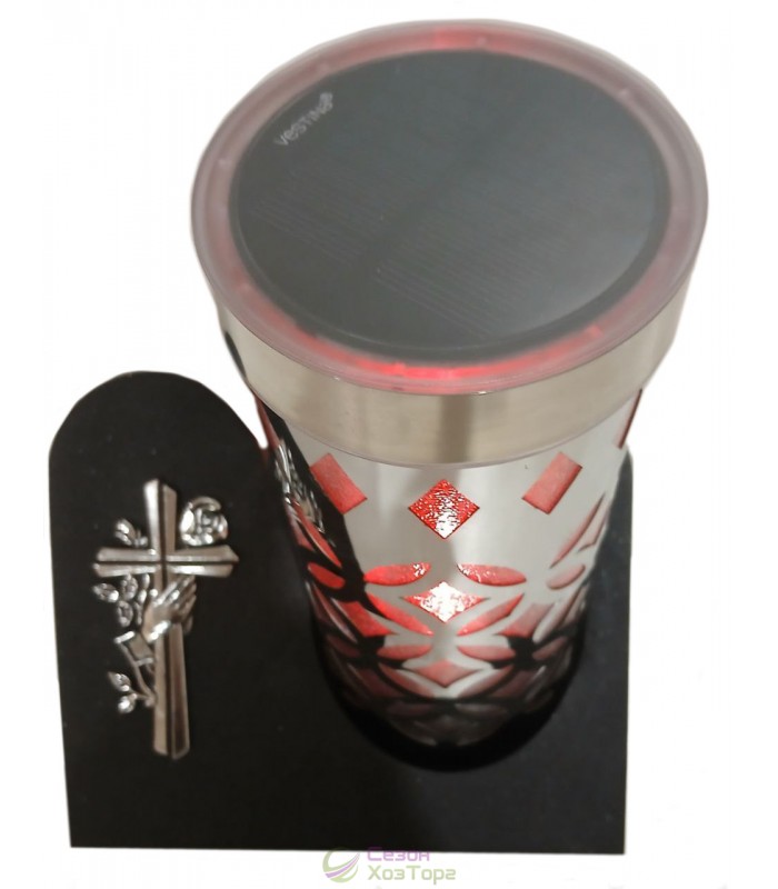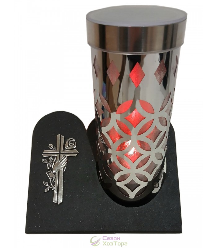 Лампадка на солнечной батарее в элегантном серебряном дизайне предназначена для длительного использования на открытом воздухе, на кладбищах, мемориалах, памятниках, в местах памяти. Работает автономно за счёт солнечной энергии, не требует подключения к электросети или замены батареек.