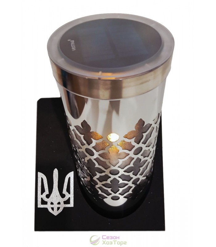 Лампадка на солнечной батарее, серебряная, на подставке "Герб" 24,5см