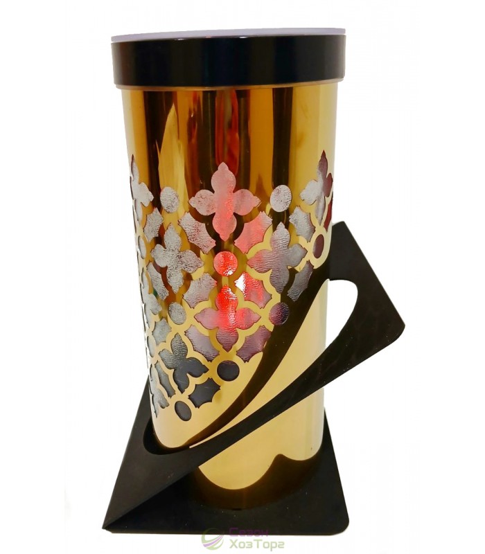 Лампадка на солнечной батарее в элегантном золотом дизайне предназначена для длительного использования на открытом воздухе, на кладбищах, мемориалах, памятниках, в местах памяти. Работает автономно за счёт солнечной энергии, не требует подключения к электросети или замены батареек.