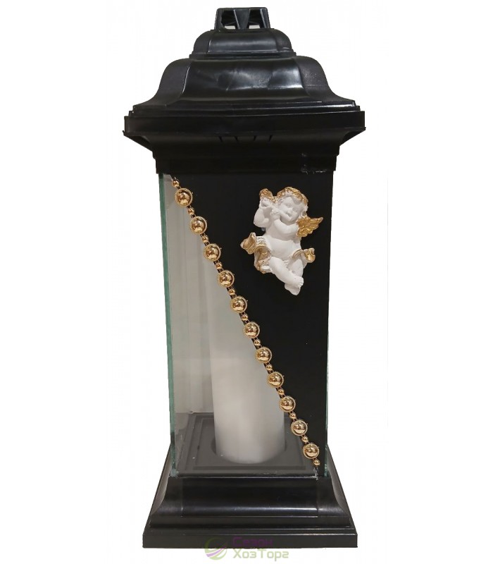 Лампадка стеклянная, лампада поминальная является одним из обязательных обрядовых атрибутов христианской веры, используемая при крещении, венчании, погребении. Чаще всего лампадку ставят в честь святого праздника Пасха, в поминальные дни. Данная лампадка содержит свечу из парафина до 120 часов горения. В последствии можна заменить израсходованную свечку на новую. Модель имеет прямоугольную форму, выполнена в черно-золотом дизайне. На стенке корпуса нанесен рельефный рисунок в виде ангела. В комплект входит пластиковая куполообразная крышка и подставка.