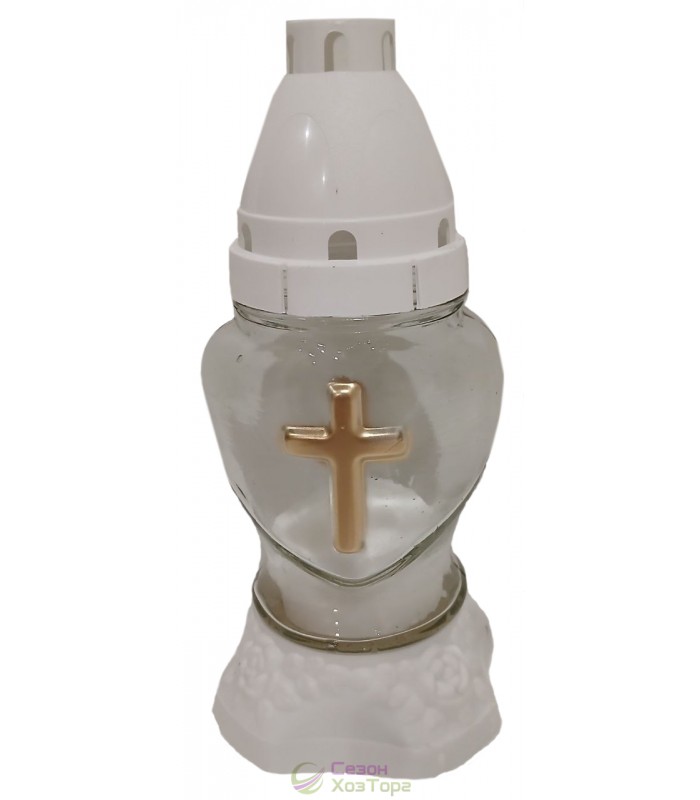 Лампадка стеклянная на 18 часов "Белое сердце с крестом"