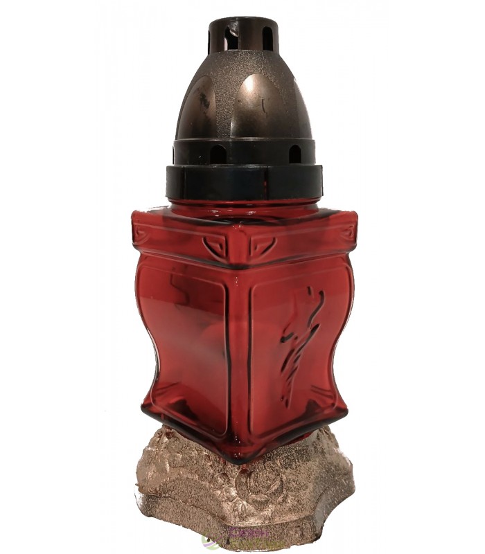 Лампадка стеклянная, лампада поминальная является одним из обязательных обрядовых атрибутов христианской веры, используемая при крещении, венчании, погребении. Чаще всего лампадку ставят в честь святого праздника Пасха, в поминальные дни. Данная лампадка содержит свечу из парафина до 18 часов горения. В последствии можна заменить израсходованную свечку на новую. Модель имеет форму квадрата, на наружной поверхности корпуса - украшение в виде креста. В комплект входит пластиковая куполообразная крышка и подставка.