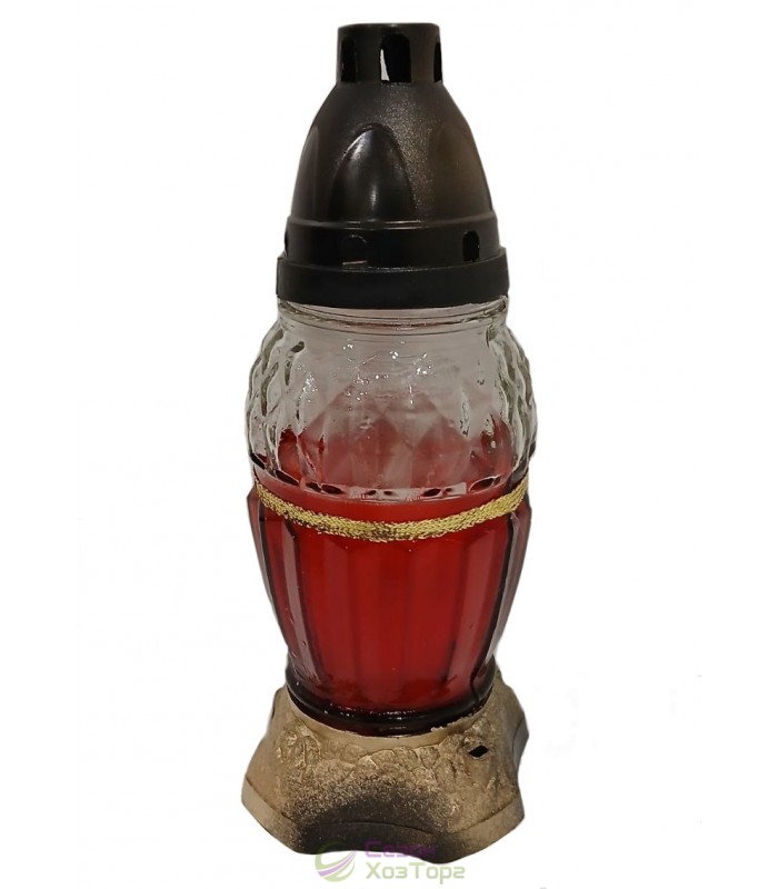 Лампадка стеклянная, лампада поминальная является одним из обязательных обрядовых атрибутов христианской веры, используемая при крещении, венчании, погребении. Чаще всего лампадку ставят в честь святого праздника Пасха, в поминальные дни. Данная лампадка содержит свечу из парафина до 20 часов горения. В последствии можна заменить израсходованную свечку на новую. Модель имеет овальную форму, на наружной поверхности корпуса - украшение в виде рельефного орнамента. В комплект входит пластиковая куполообразная крышка и подставка.