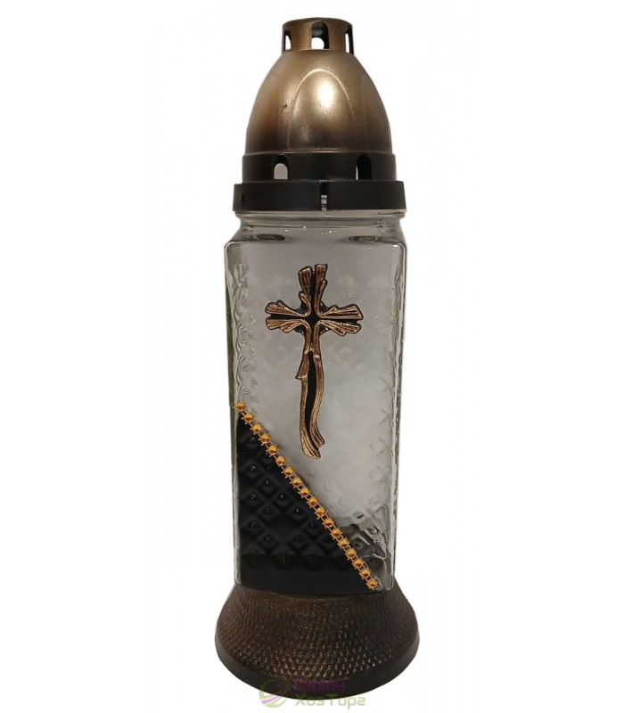 Лампадка стеклянная на 36 часов "День-ночь/Крест волнистый"