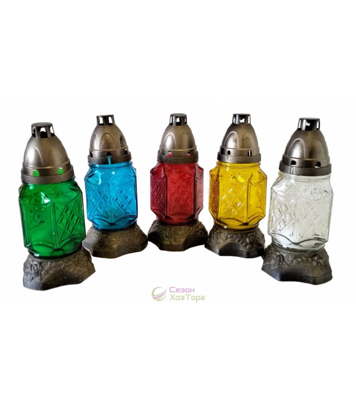 Лампадка стеклянная, лампада поминальная является одним из обязательных обрядовых атрибутов христианской веры, используемая при крещении, венчании, погребении. Чаще всего лампадку ставят в честь святого праздника Пасха, в поминальные дни. Данная лампадка содержит свечу из парафина до 18 часов горения. В последствии можна заменить израсходованную свечку на новую. Модель имеет форму квадрата, на наружной поверхности корпуса - украшение в виде геометрического орнамента. В комплект входит пластиковая куполообразная крышка и подставка.