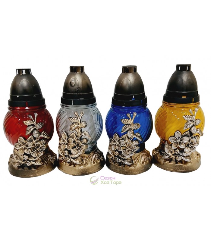 Лампадка стеклянная, лампада поминальная является одним из обязательных обрядовых атрибутов христианской веры, используемая при крещении, венчании, погребении. Чаще всего лампадку ставят в честь святого праздника Пасха, в поминальные дни. Данная лампадка содержит свечу из парафина до 24 часов горения. В последствии можна заменить израсходованную свечку на новую. Модель выполнена в форме овала, пластиковая подставка имеет дополнительное съемное декоративное украшение в виде цветка. В комплект входит пластиковая куполообразная крышка.