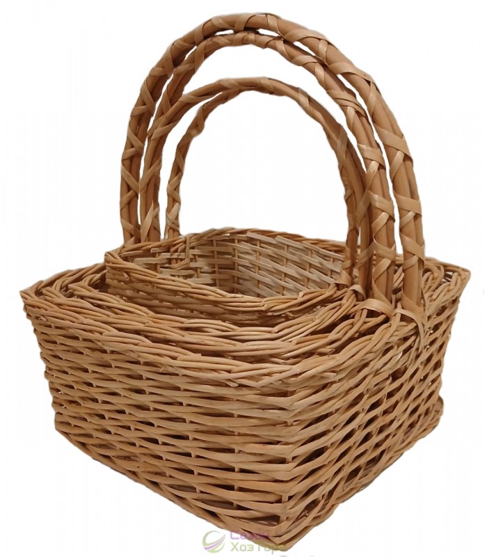 Плетеные корзины из лозы "Рыбак" с двойной ручкой (набор из 2 шт)
