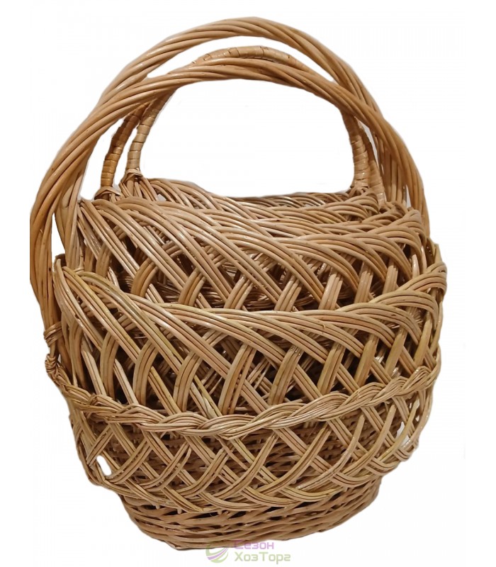 Плетеные корзины из лозы "Рыбак" с двойной ручкой (набор из 2 шт)