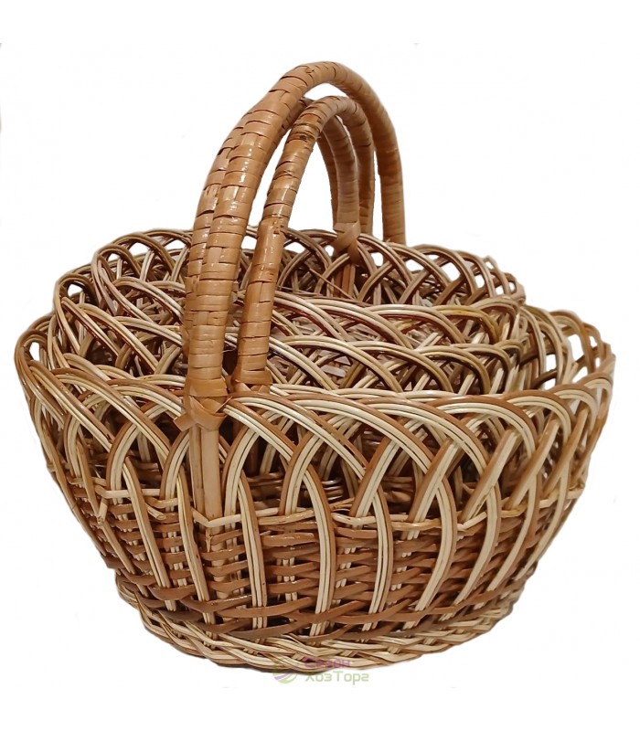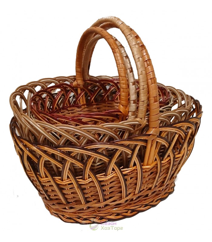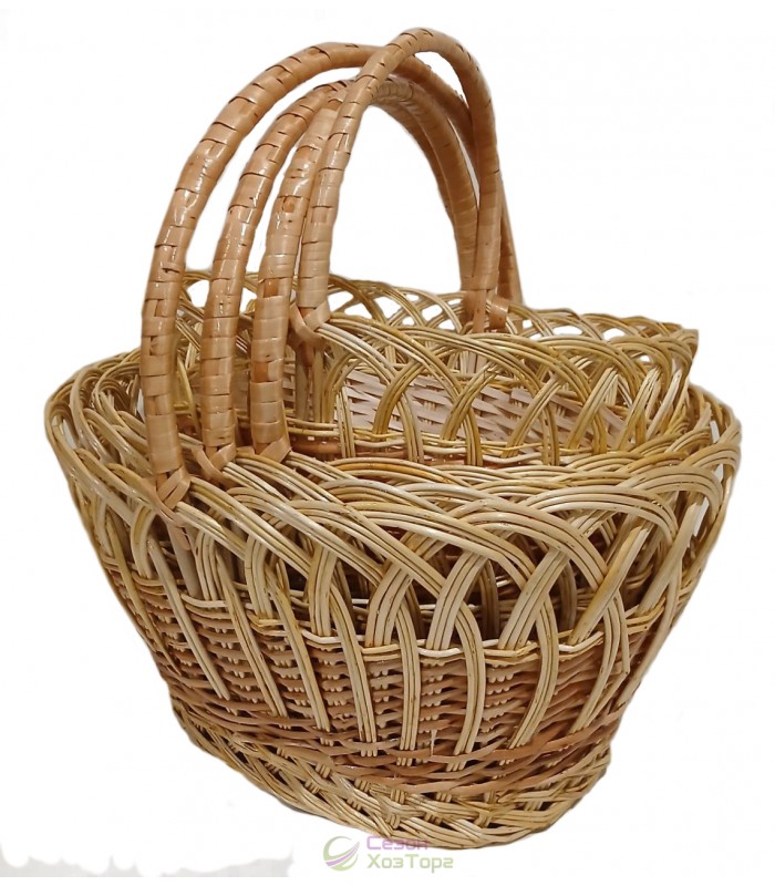 Плетеные корзины из лозы "Рыбак" с двойной ручкой (набор из 2 шт)