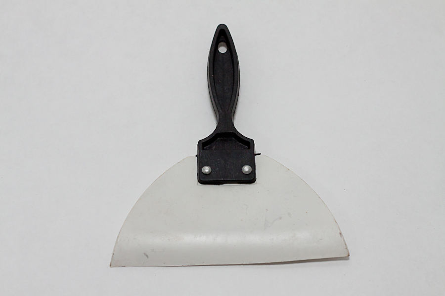 8. Шпатель-скребок используется только для удаления штукатурки, краски, обоев, клея с поверхностей. Данная модель должна быть изготовлена из высокопрочных материалов и иметь заточенное лезвие. При покупке шпателя необходимо обратить внимание на рукоятку, она должна быть удобной для удерживания в руке и иметь прочное крепление с полотном.