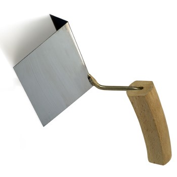 4. Угловой шпатель - это одна из разновидностей малярного инструмента, который применяется для работы с углами. Стоит отметить, что изгиб шпателя не равен прямому углу (90°), т.е. с помощью него нельзя сформировать угол одним движением, он лишь выравнивает две плоскости, образующих угол. Это является одной из причин, почему данная модель не получила широкого применения, вторая причина - это возможность использовать обычный шпатель при обработке поверхностей со стыками.