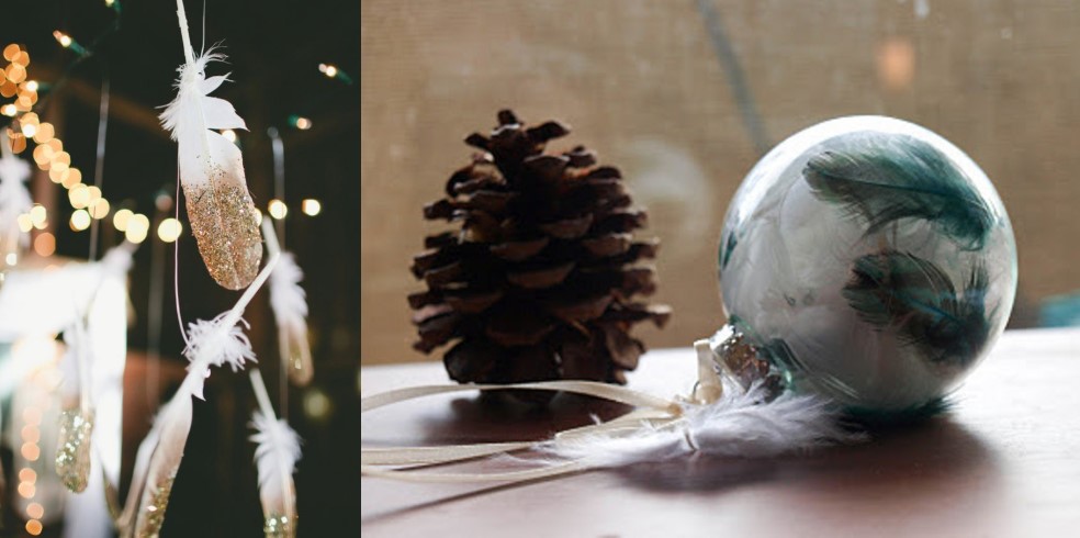 Пір'я, якщо таке в будинку є, завжди можна пофарбувати. Вони цілком згодяться за новорічні іграшки. І якщо їх перетворити на білий, то пір'я стане прототипом снігу.