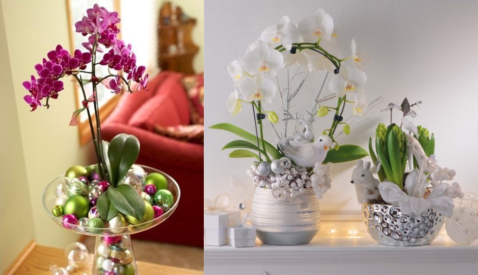 Домашні рослини не залишаться поза увагою. Горщики можна прикрасити сніжинками, іграшками, а на самі листя розкласти штучний сніг.