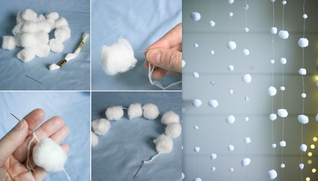 Вата може зійти за сніг. Її можна розкласти будь-де, навіть безпосередньо на ялинці. Ватою можна прикрасити вікна.