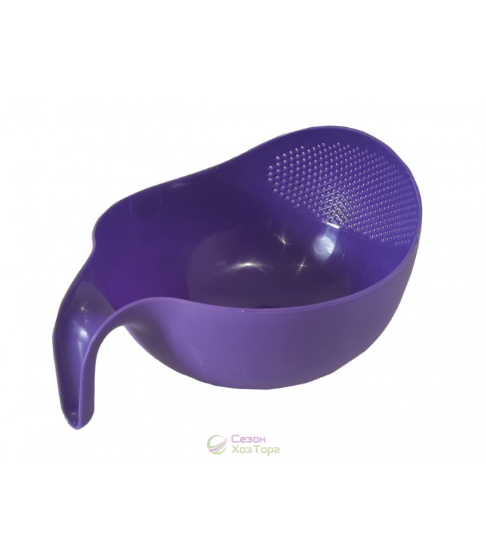 Виріб є пластиковим ківшем, одна зі сторін якого перфорована, і частина ємності виконує функції дуршлагу. Розміри: ширина 21 см, довжина 25 см, висота 15 см. Колір різний.