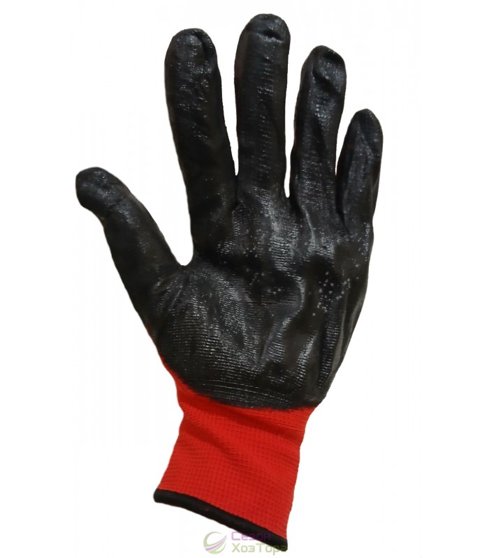 Рукавички стрейчеві червоного кольору з чорним нітриловим покриттям використовуються в садово-городніх, будівельно-ремонтних і господарсько-побутових роботах. Дані рукавички характеризуються високою еластичністю, зносостійкістю та гарним зчепленням з предметами. Шар нітрилу, нанесений на робочу поверхню рукавички, попереджає ковзання предметів у руках, не перешкоджає тактильним відчуттям у долоні, дає можливість працювати з мастильними речовинами чи об'єктами, на які нанесені ці речовини. Допускається прання за 40°С.
