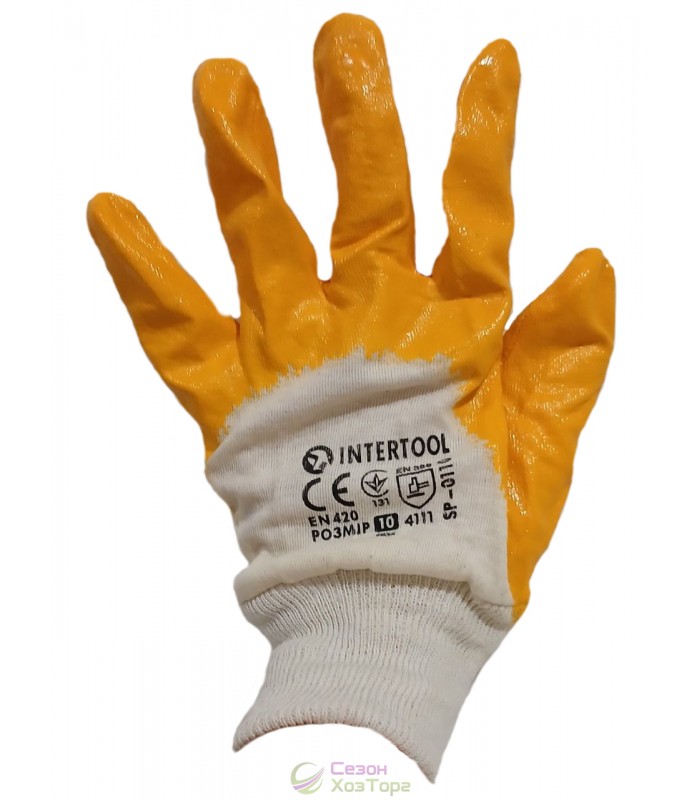 Рукавички захисні трикотажні мають двостороннє покриття із нітрилу жовтого кольору та в'язаний манжет. Використовуються в ремонтно-будівельних, садово-городніх та господарсько-побутових роботах, що потребують контакту з маслами, жирами, речовинами нафтохімічної промисловості та різними рідинами. Ці рукавички характеризуються високою міцністю, зносостійкістю. Шар нітрилу, нанесений на робочу поверхню рукавички, попереджає ковзання предметів у руках, забезпечуючи відмінне зчеплення.