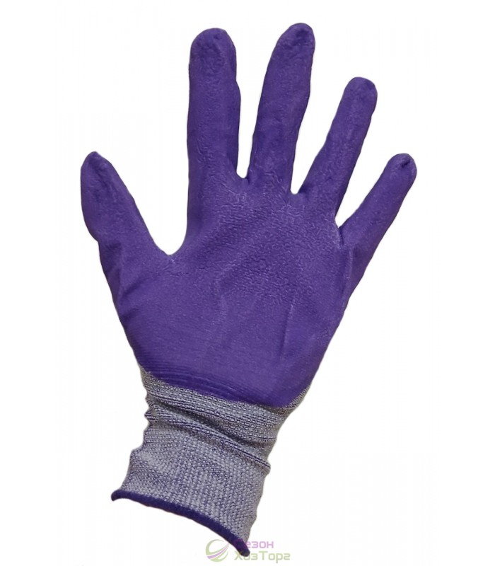 Рукавички стрейчеві фіолетового кольору з покриттям зі спіненого латексу використовуються в садово-городніх, будівельно-ремонтних і господарсько-побутових роботах. Дані рукавички характеризуються високою еластичністю, зносостійкістю та гарним зчепленням з предметами. Шар піни, нанесений на робочу поверхню рукавички, попереджає ковзання предметів у руках, не перешкоджає тактильним відчуттям у долоні, дає можливість працювати з мастильними речовинами чи об'єктами, на які нанесені ці речовини. Допускається прання за 40°С.