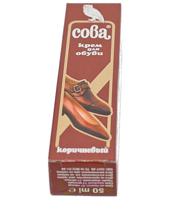 Крем Сова призначений для догляду за взуттям із гладкої шкіри чорного або коричневого кольору. Якість та популярність даного крему перевірені часом. Засіб чудово живить матеріал, приховує всі недоліки, захищає взуття від дії зовнішніх факторів, надає їй ефекту новизни і продовжує термін служби.