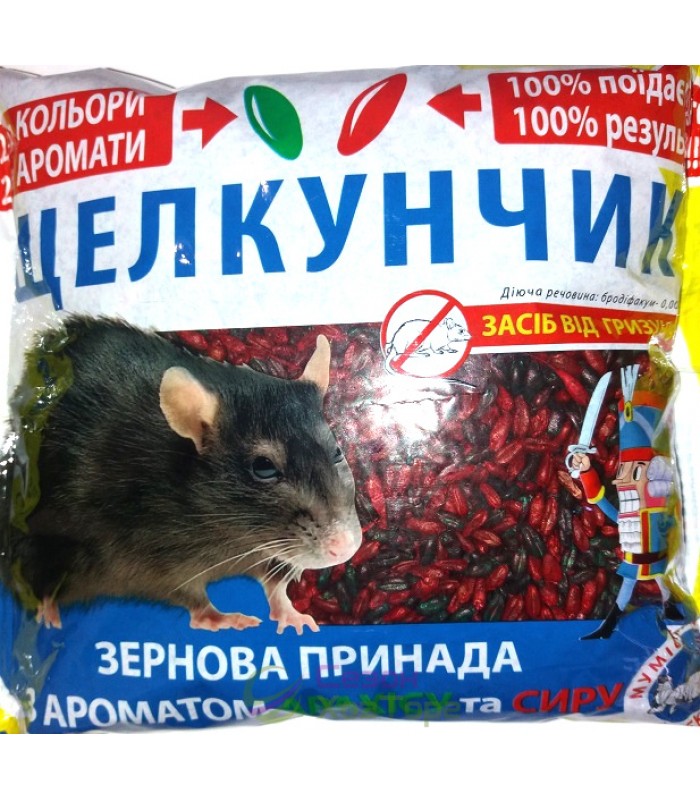Родентицидний засіб "Лускунчик" у вигляді зернової суміші використовується для знищення щурів і мишей, для дератизації на об'єктах різних категорій та в умовах побуту як готова приманка. Механізм дії засобу складається із властивостей діючої речовини. Воно є антикоагулянтом, який при попаданні в організм шкідника порушує утворення вітаміну К1, який відповідає за утворення білків протромбінового комплексу. Через 1-2 дні після вживання летальної дози приманки, рівень згортання крові у гризунів різко сповільнюється, що призводить до кровотеч як внутрішніх, так і зовнішніх. Загибель настає через 3-7 діб. Засіб діє навіть у разі резистентності гризунів до інших приманок.