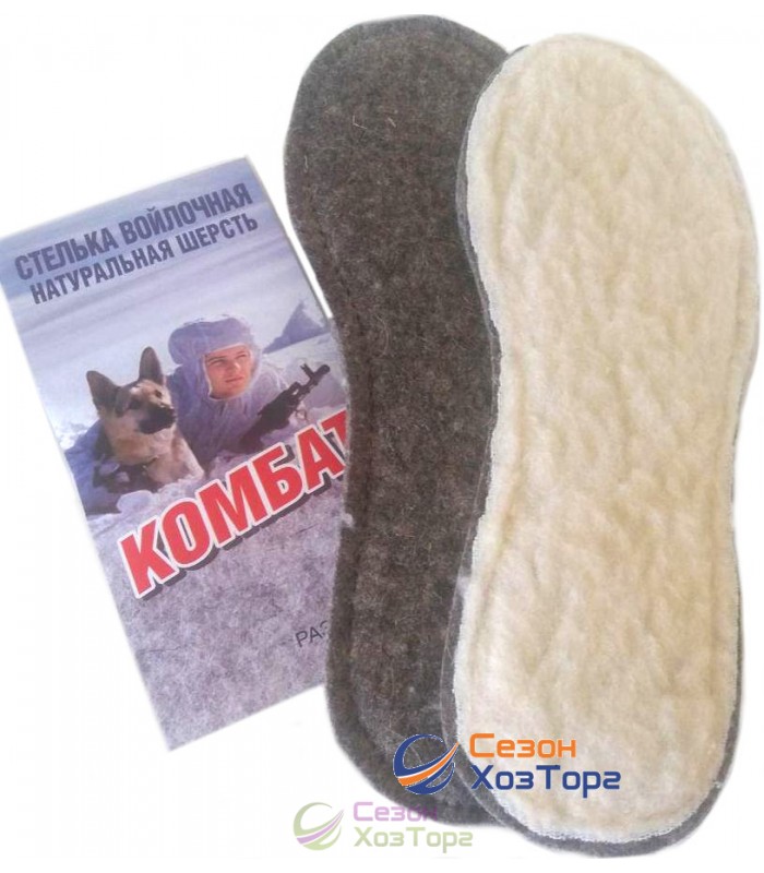 Устілки Комбат з овчини на повсті є ефективним засобом для утеплення взуття, забезпечують його комфортне використання, підтримують здоровий стан стопи. Дані устілки мають такі властивості: низька теплопровідність, висока теплоізоляція, зносостійкість. Застосування устілок з вовни гарантує сухе комфортне тепло ногам, покращення кровопостачання, зняття втоми та напруги в стопах. Повсть відрізняється гарною щільністю, яка забезпечує стійкість устілки до деформацій.