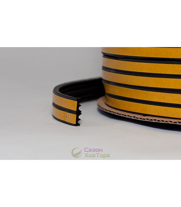 Ущільнювач гумовий для дверей та вікон E-подібний 9*4 мм виготовлений з гуми з клейким шаром та армуючими нитками, має силіконізований захисний лайнер. Ущільнювач наклеюється по периметру віконних рам та дверних прорізів, забезпечуючи захист приміщень від температурних впливів, вітру, шуму, пилу, комах, вихлопних газів. Використання Е-подібного ущільнювача забезпечує ідеальне закриття зазорів різної ширини. Ущільнювач має такі властивості: підвищена пластичність і гнучкість, зносостійкість, високі показники звуко- та термоізоляції, адгезії до поверхонь з дерева, металу, пластику.