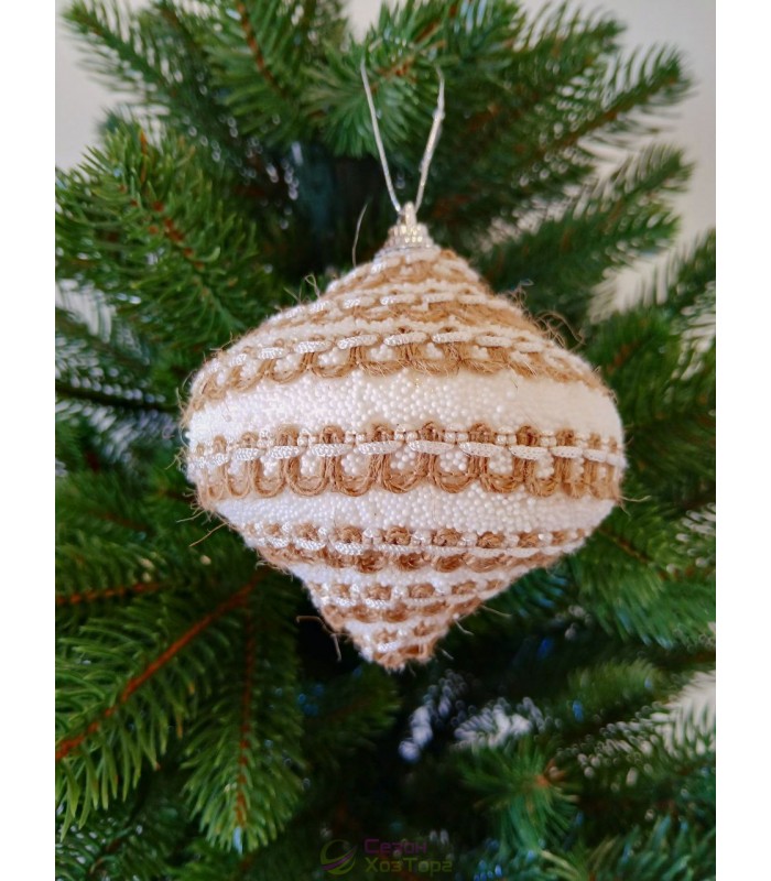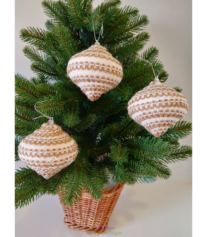 Ялинкова прикраса дзиґа з декором із тканини Ø80мм, ціна за набір 3 шт (SH296)