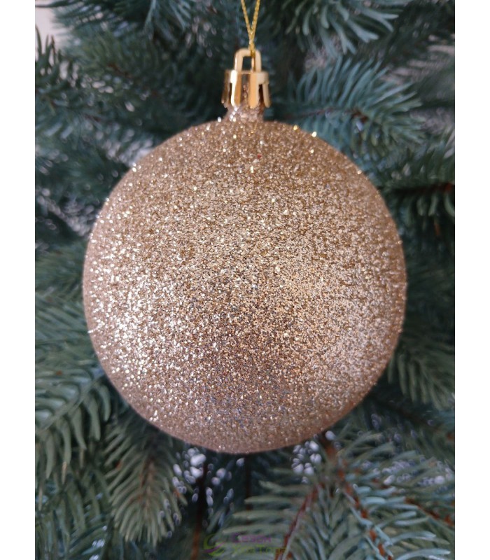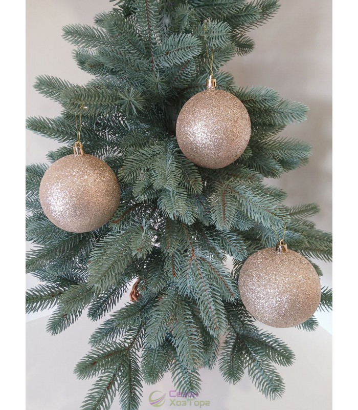 Новорічна куля "Блискітки" Ø100мм бежева, ціна за набір 3шт