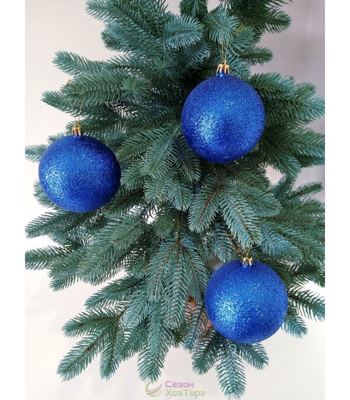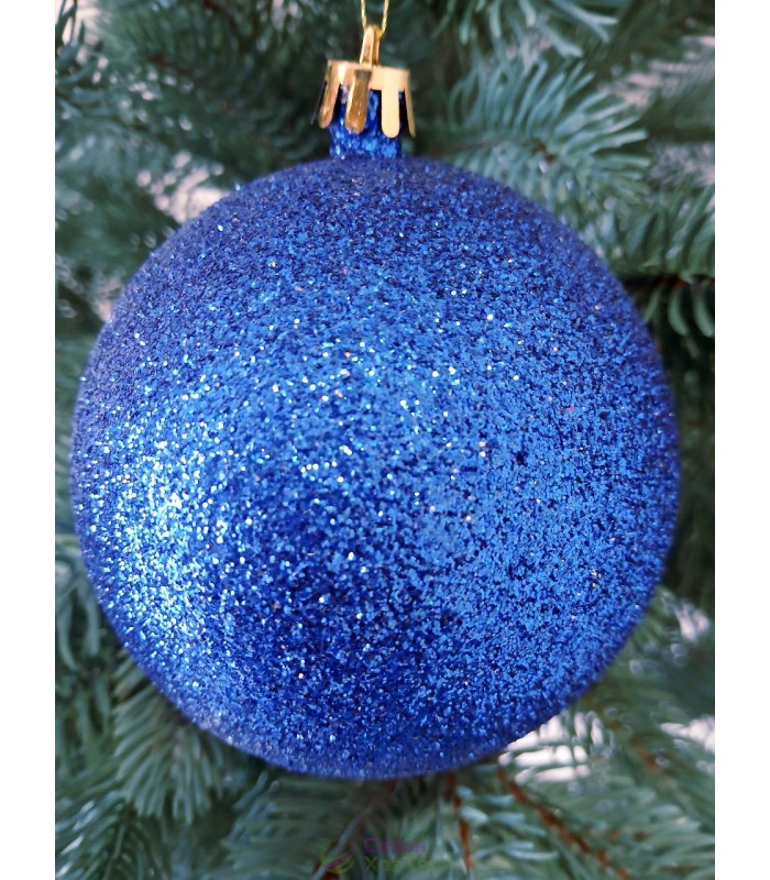Новорічна куля "Блискітки" Ø100мм синя, ціна за набір 3шт