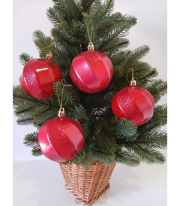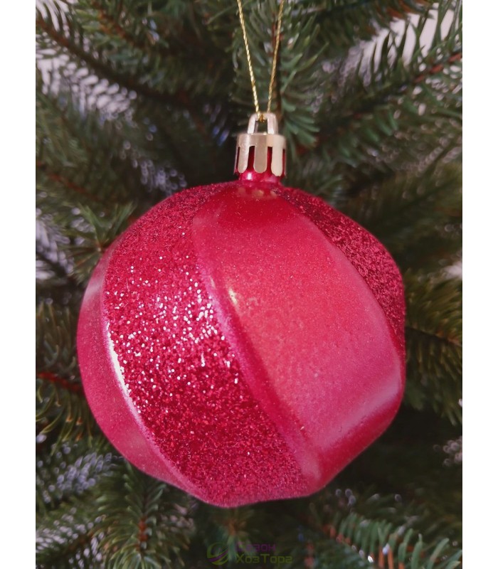 Новорічна куля в блискітках "Хвилька" Ø80мм червона, ціна за набір 4шт