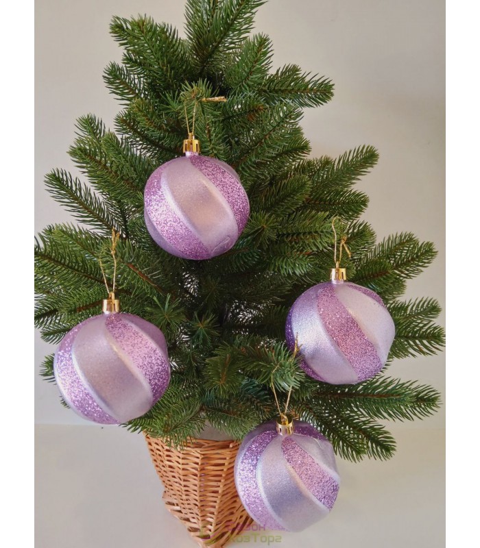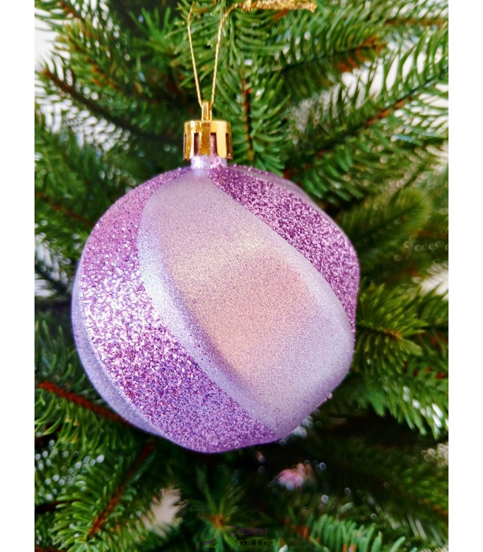 Новорічна куля в блискітках "Хвилька" Ø80мм фіолетова, ціна за набір 4шт