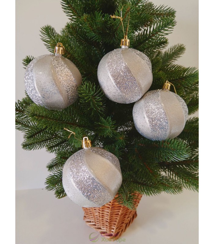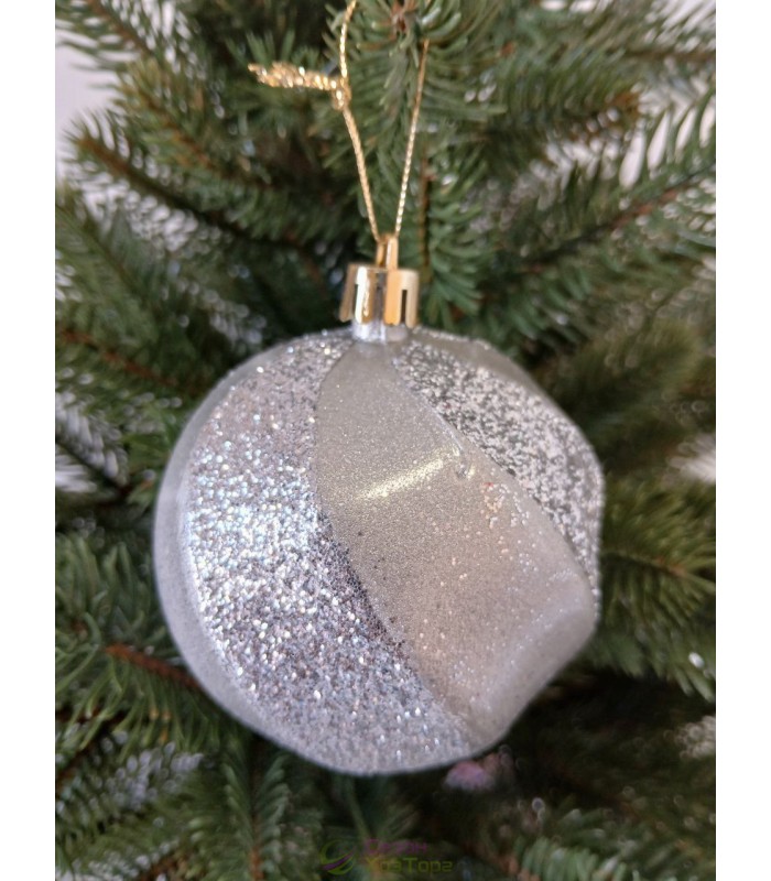 Новорічна куля в блискітках "Хвилька" Ø80мм сіра, ціна за набір 4шт
