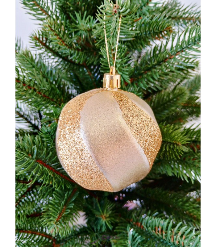 Новорічна куля в блискітках "Хвилька" Ø80мм золота, ціна за набір 4шт