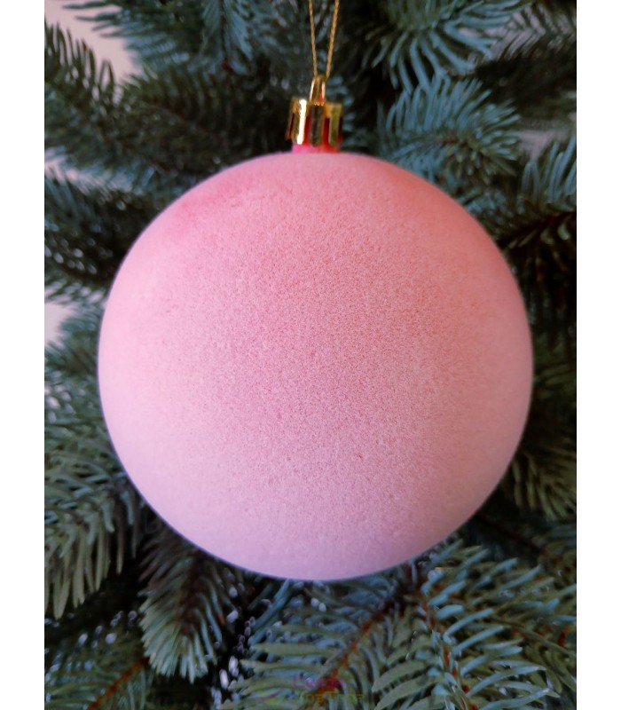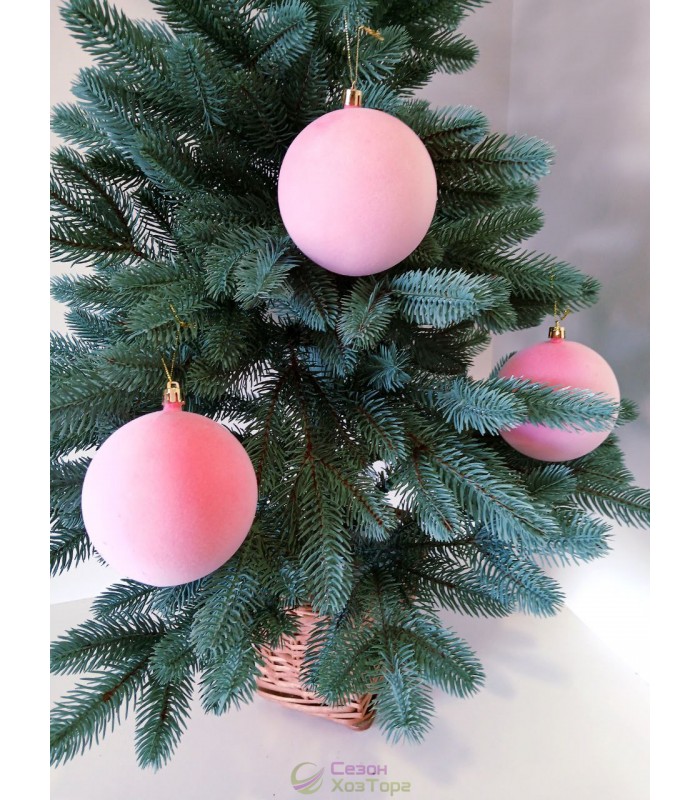 Новорічна куля "Оксамит" Ø100мм рожева, ціна за набір 3шт